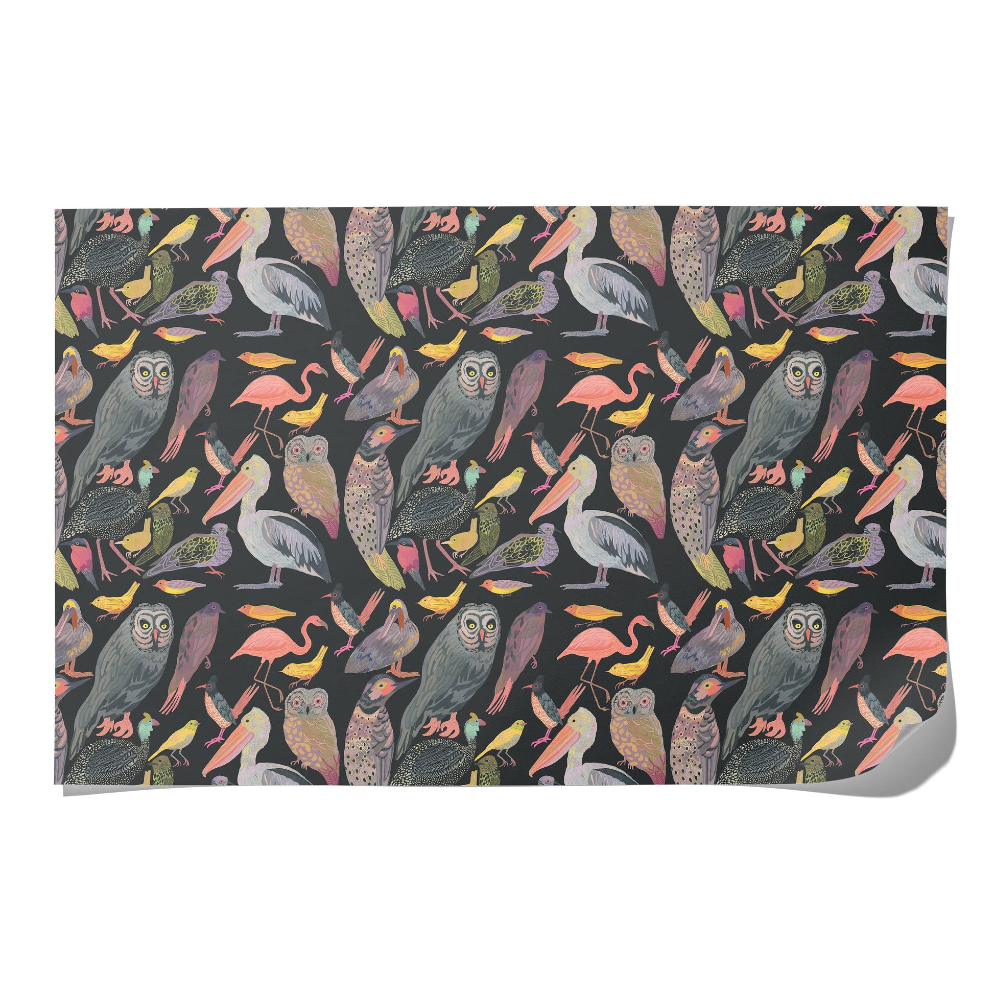 Sold as individual 19 x 27 inch sheets of flat wrap, or as 3 sheets rolled and sealed together in cellophane (without a cardboard core). Illustrated by Michelle Morin. Printed by Red Cap Cards in Los Angeles, California, USA, on recycled paper.