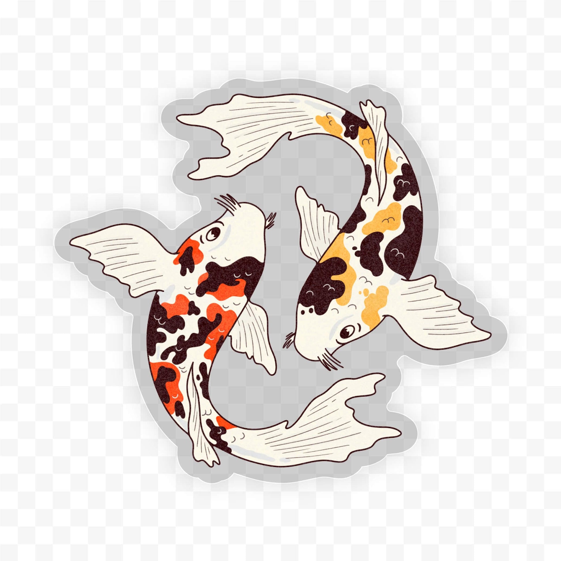 Orange and yellow Koi Fish clear sticker. High quality vinyl sticker. Great to decorate laptops, water bottles, car windows, coolers, phone cases, journals, and more.