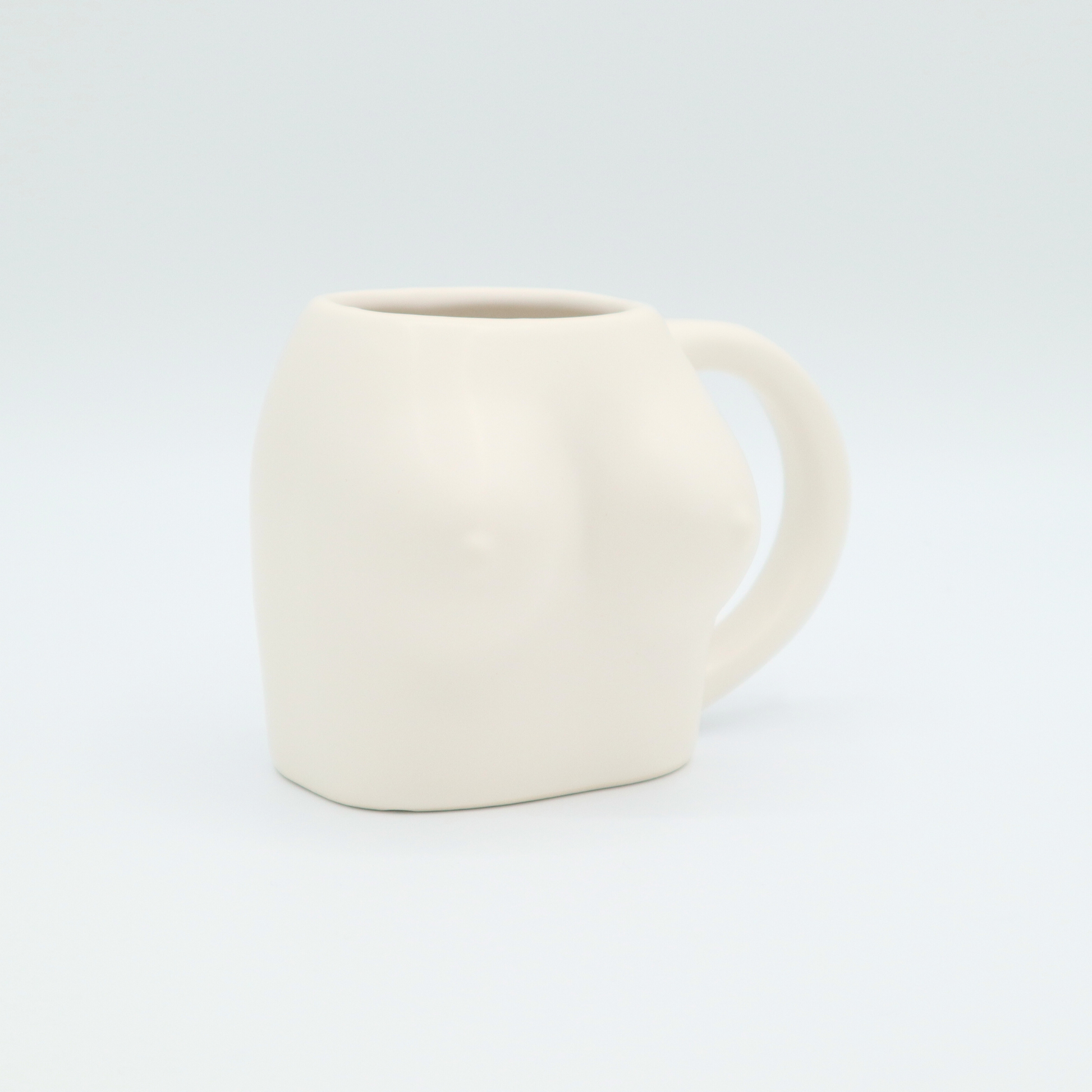 You know you love it! Edgy and empowering, our boob mug is one of our best-sellers and an important part of the body mug collection. (Check out our butt mugs!) Colors available: black, white, marble, pink, and teal.