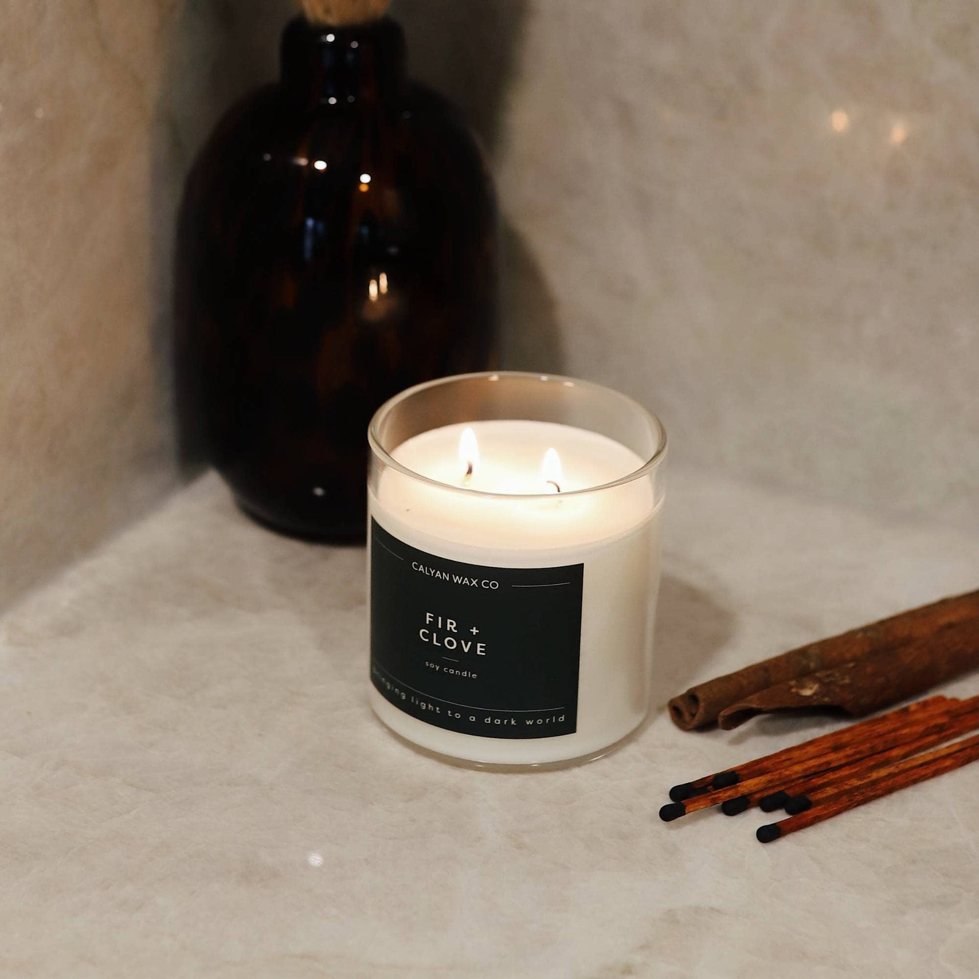 Fir + Clove - Clear Glass Tumbler Soy Candle