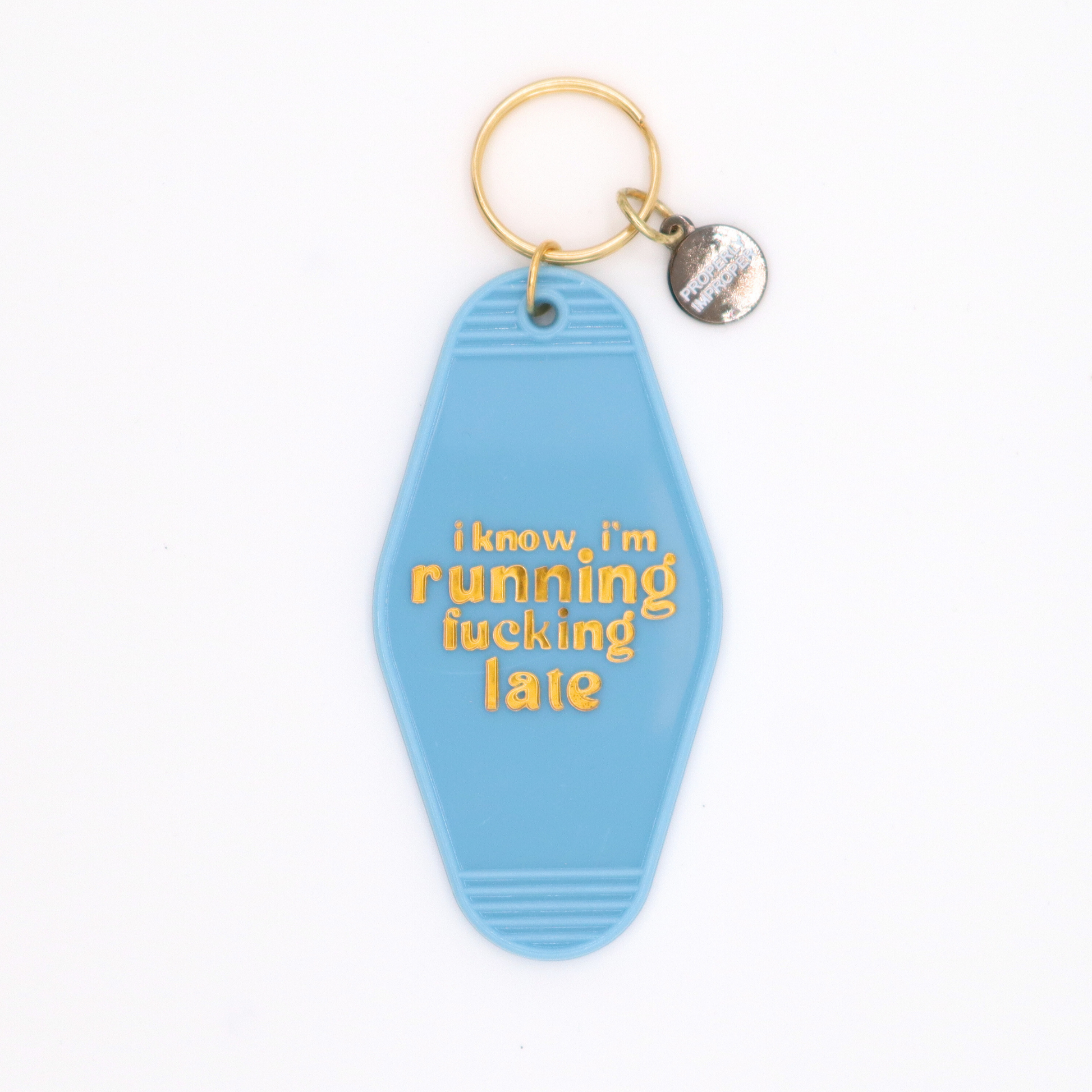 I Know I'm Running Fucking Late - Hot Stamped Motel Keychain