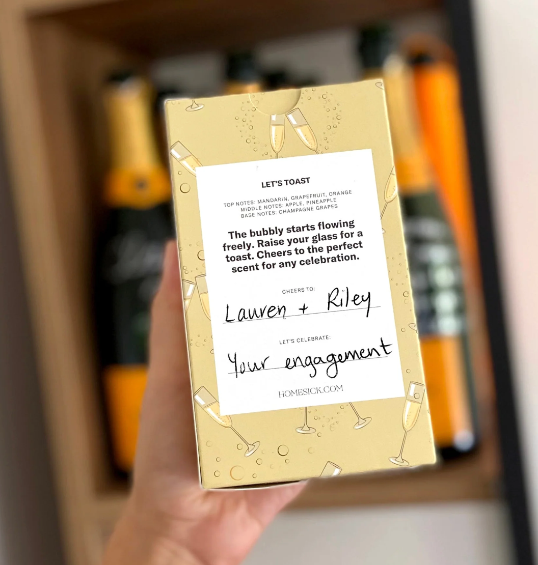 The bubbly starts flowing freely. Raise your glass for a toast. Cheers to the perfect scent for any celebration. Cheers to: Let’s Celebrate:Homesick Candles evoke treasured memories through authentically crafted, scented products created in collaboration with passionate communities. Premium candles for anyone wanting to celebrate the people, places, and moments that matter most. 13.75oz, 60-80 hour burn, made of a natural soy wax blend with premium cotton wicks. Non-toxic and does not contain lead, plastics, paraben, synthetic dyes or phthalates.