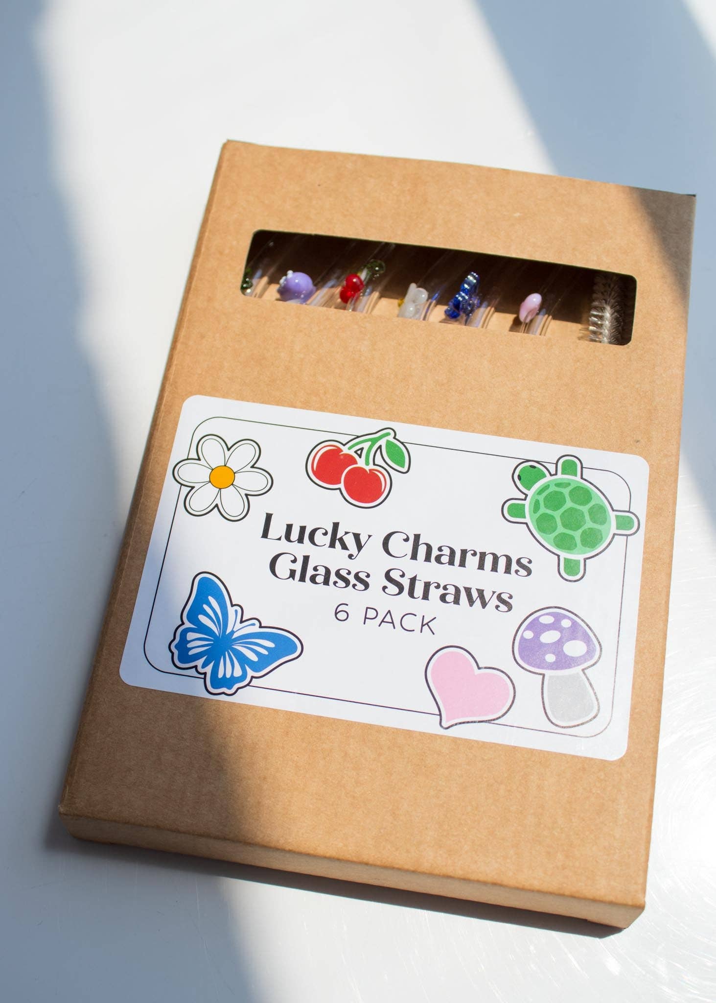 * Lucky Charms Straw set features a turtle, daisy, heart, butterfly, cherries and mushroom
