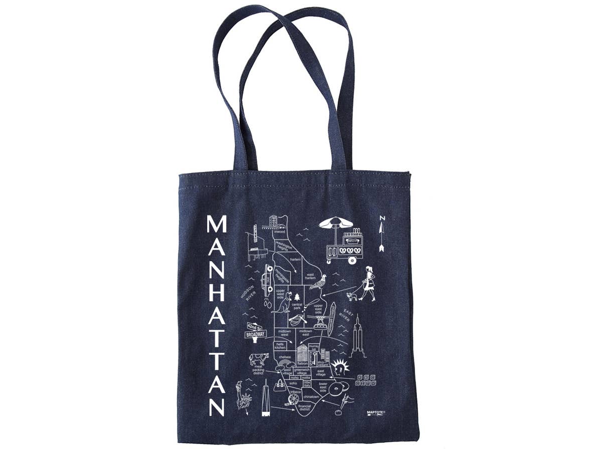This durable and stylish denim tote bag wears well over time and has a handy inside pocket. Makes for a unique and practical souvenir featuring a map of Manhattan, New York.