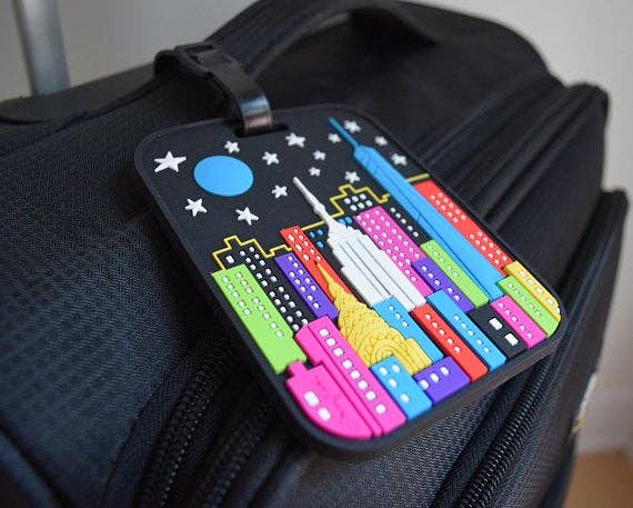Show your love for New York City with this great looking 4.25 x 3 x .25 inch thick large heavy duty New York Night Luggage Tag. Our flexible tags are indestructible, extremely durable, and can stand up to all elements and abuse your luggage may endure. Bright colors, original iconic artwork by Mary Ellis, and unique 3-d design insures your bag will be easy to spot. Perfect for your luggage, but also great on a backpack, over night bag, or purse, featuring a hidden address compartment to protect your identity.
