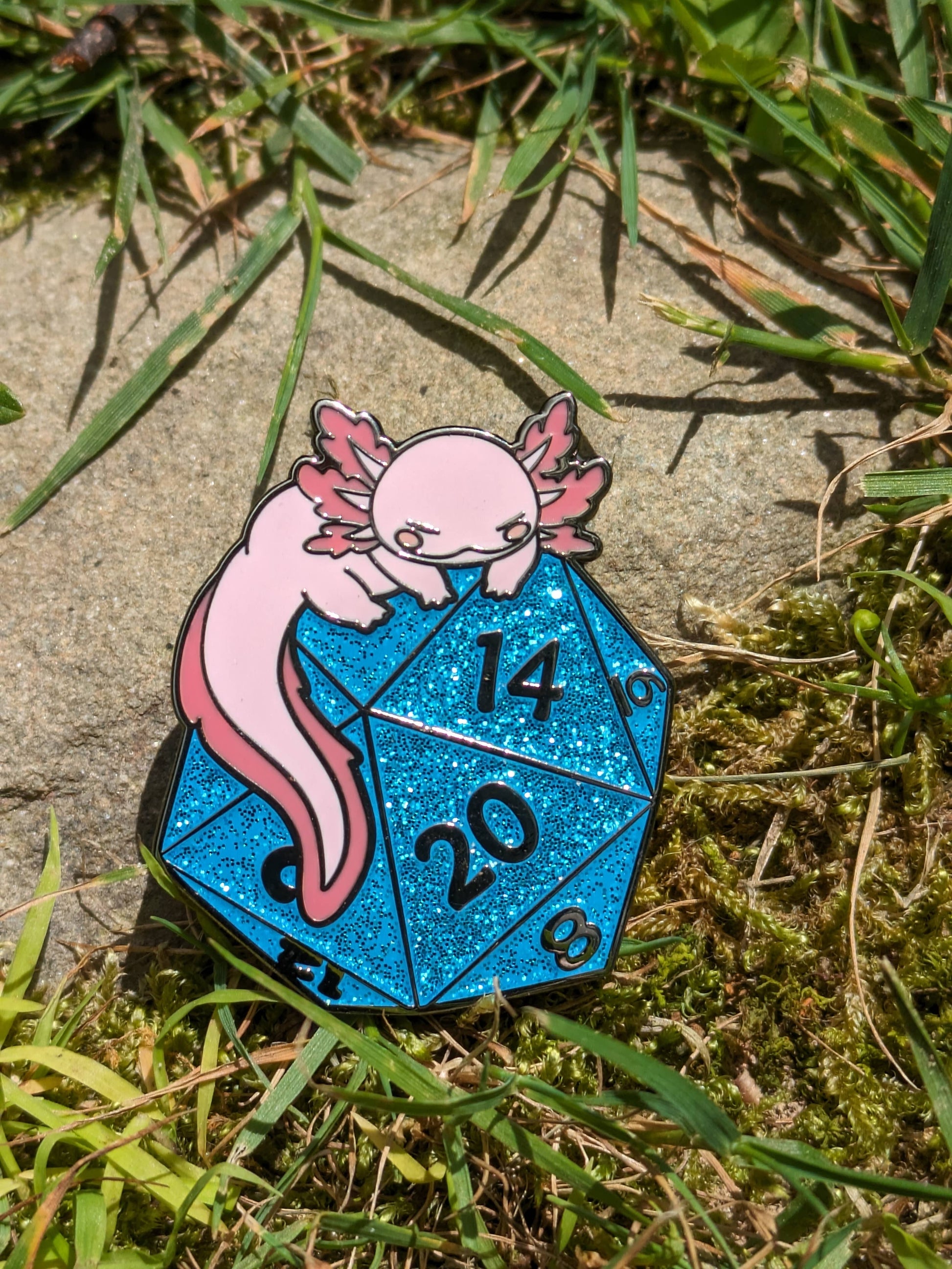 Mimic Gaming Co - Axolotl on D20 Hard Enamel Pin -1.5"