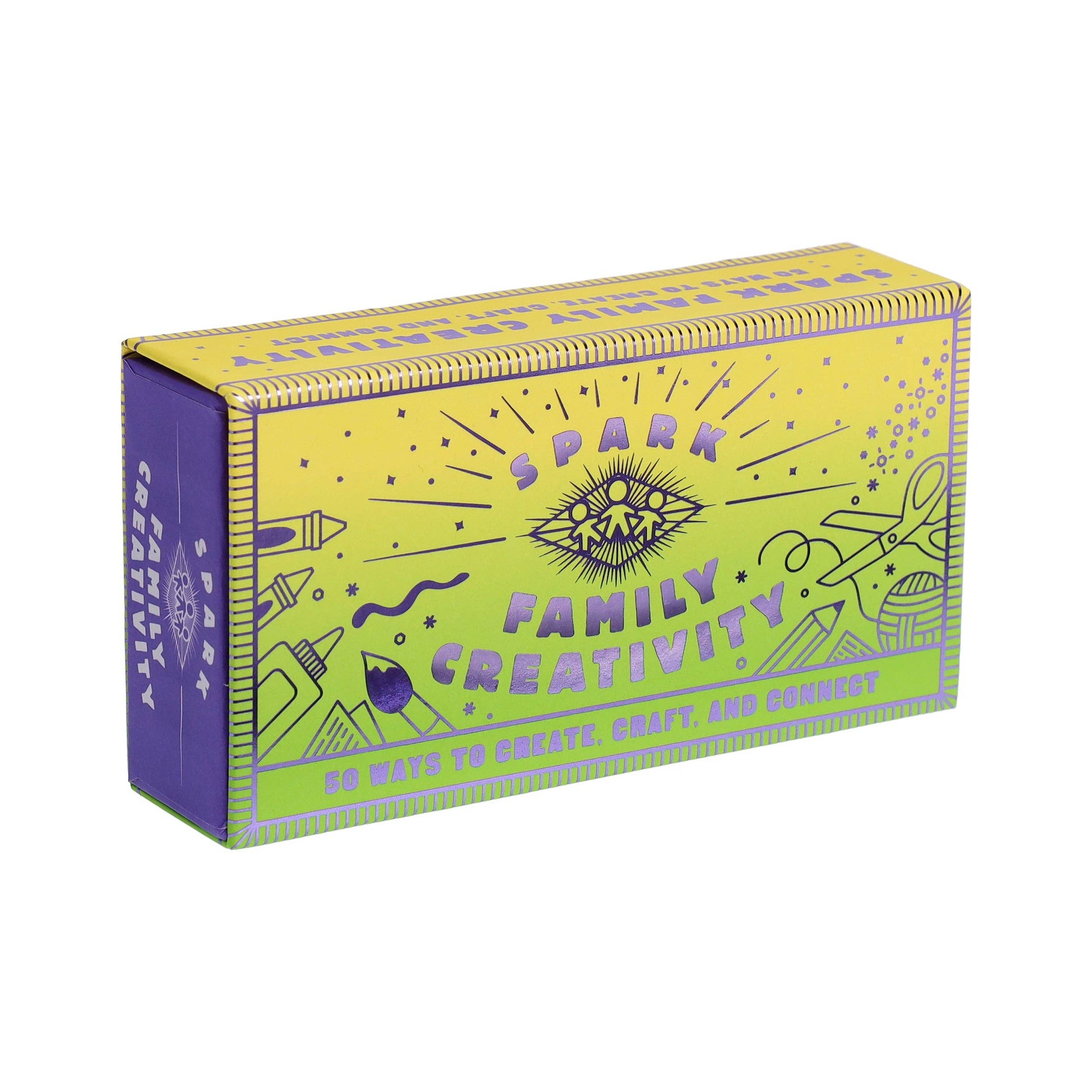 Make any day sparkle! This newest addition to the popular Spark series is full of fun prompts to get the whole family creating, imagining, and playing together. This shimmering faux matchbox is filled with 50 prompts for hands-on activities that encourage connection and creativity for all ages! Design a family crest together, reuse everyday materials to build a tiny town, or craft cards for friends and relatives. With 50 ideas for creative play, this box will spark imagination and screen-free fun on rainy days or whenever boredom strikes. UNIQUE WAY TO SPARK JOY: Slide open this shimmering box to reveal 50 kraft sticks in the shape of matches.