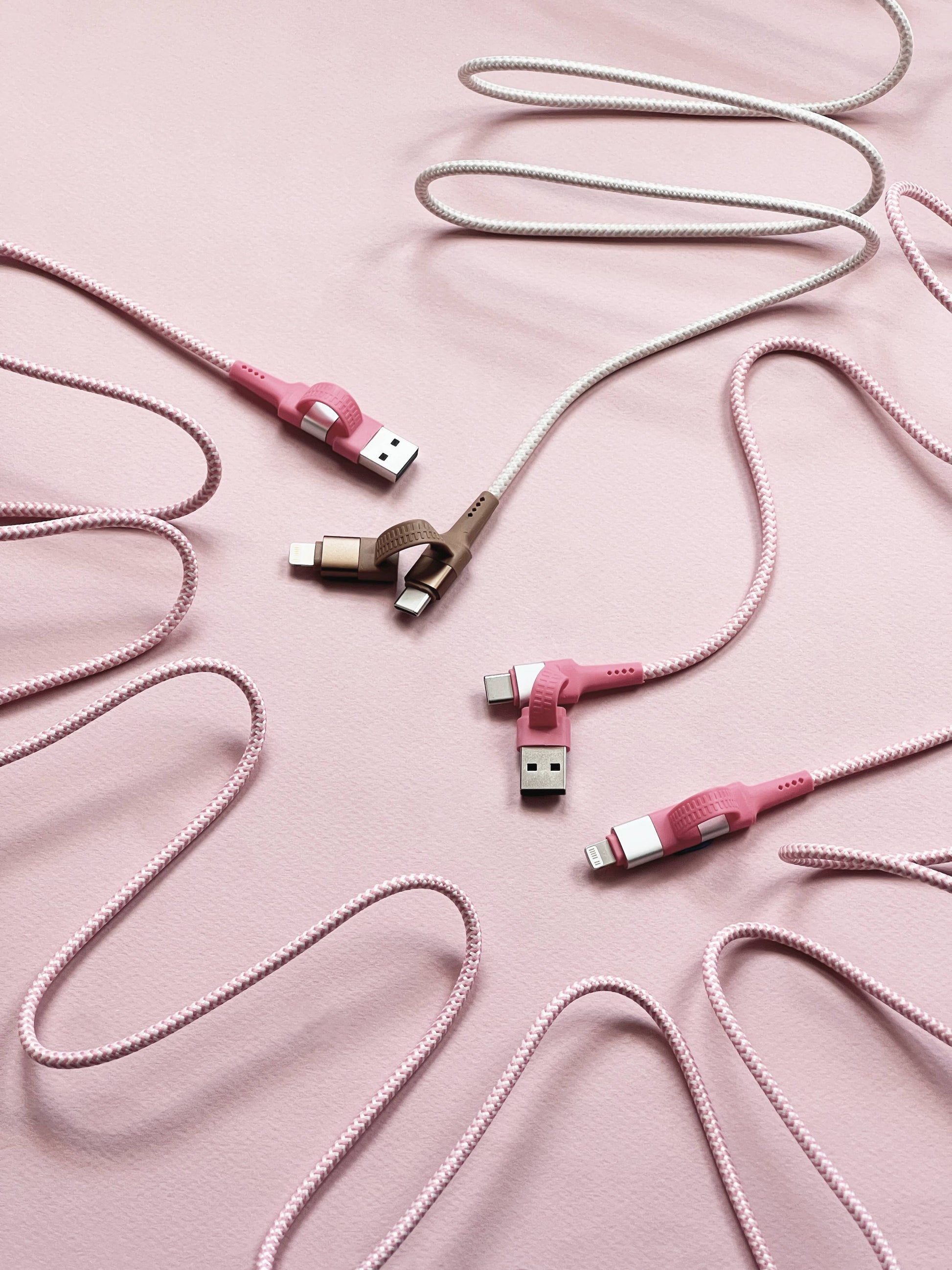 The Two Faced™ cable is one for all. With two tips on each end, (Lightning & USB-C on the device end; USB & USB-C on the wall end) it works with all your things. Time to swap the old cable mess in your drawer with this single cord.