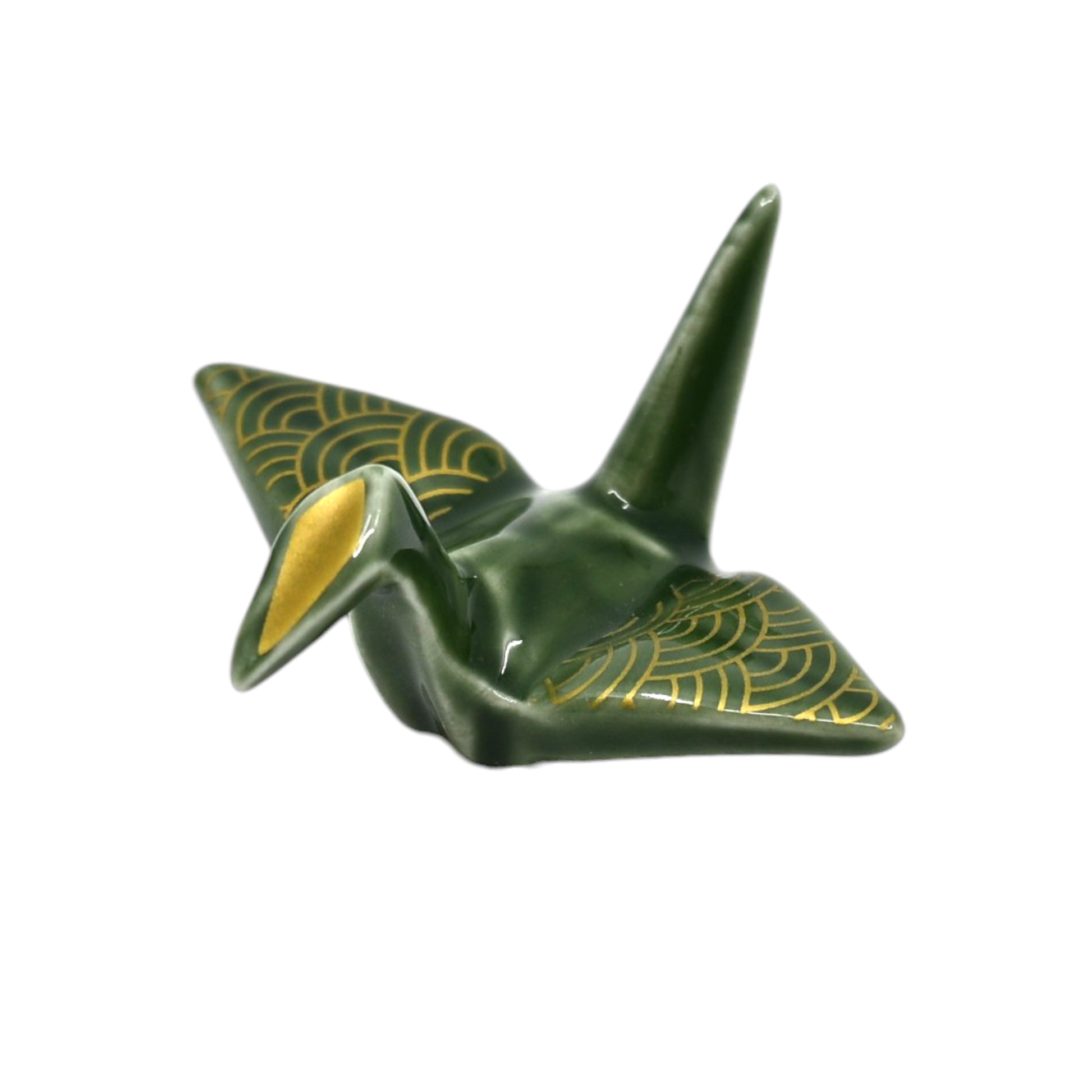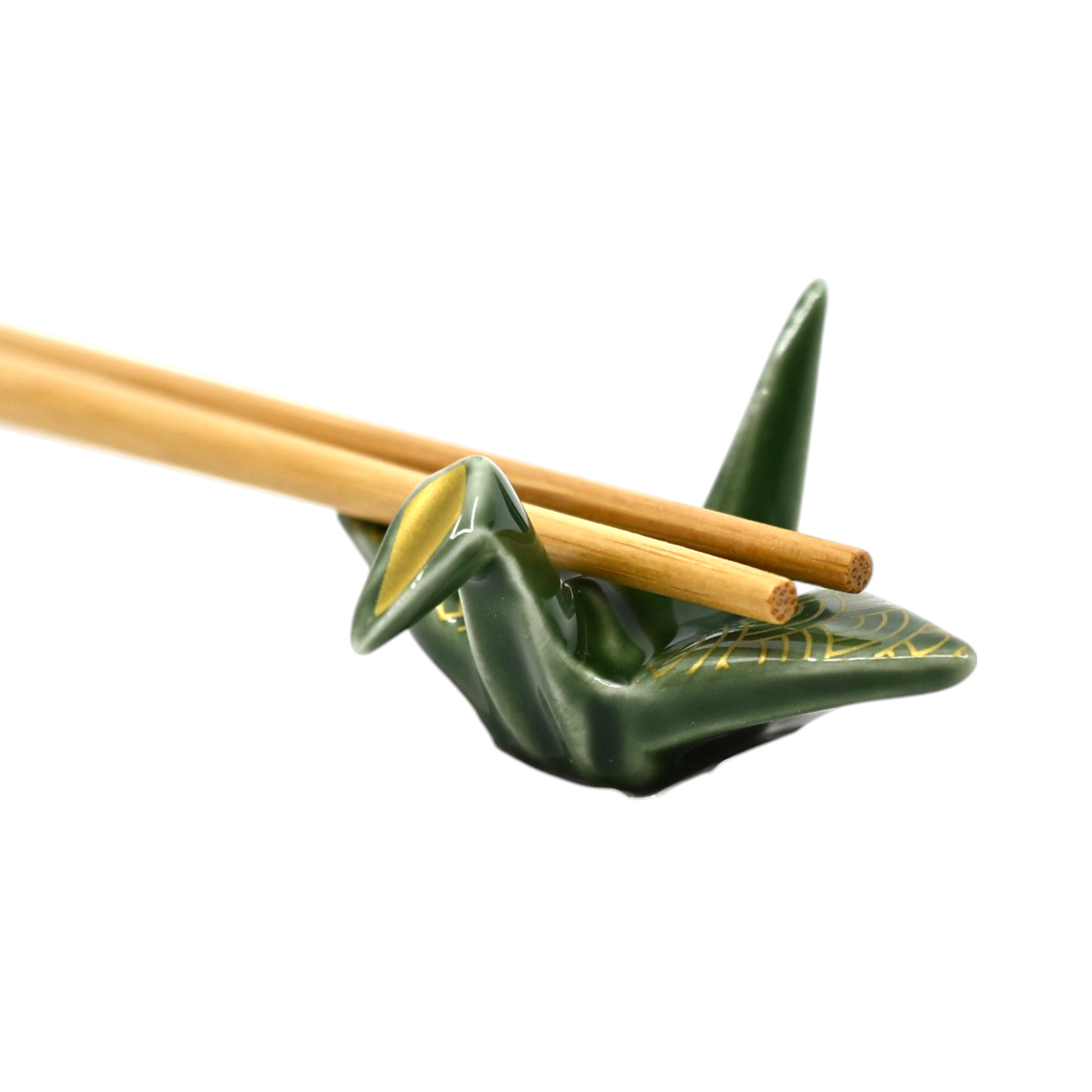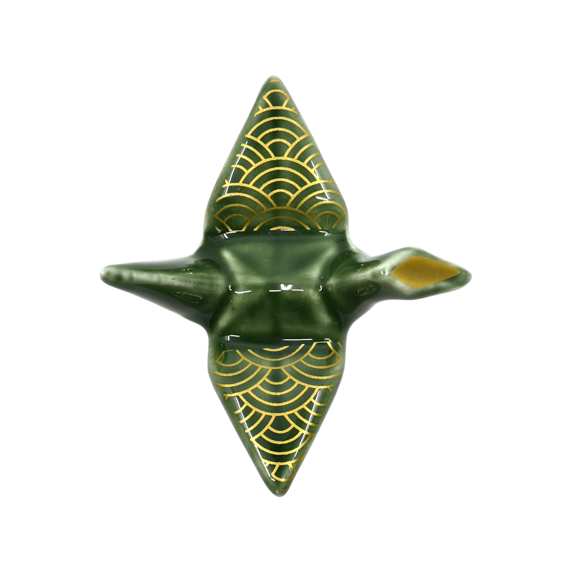 Urban Tokyo - Origami Crane Porcelain Chopsticks Rest 2"L Seigaiha Green (12/288)