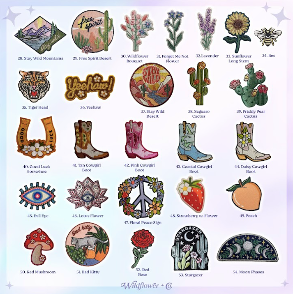 Baseball hats feature your fave patch & choice of hat color! Quirky baseball hats feature your fave embroidered patch & choice of hat color! Choose a patch based on your vibe! Rose for brunch or a low key party, unicorn when you’re feeling magical, alien when you’re spaced out, wild & free when you need an adventure - you get the idea! Hats are from Adams & include their logo on the back