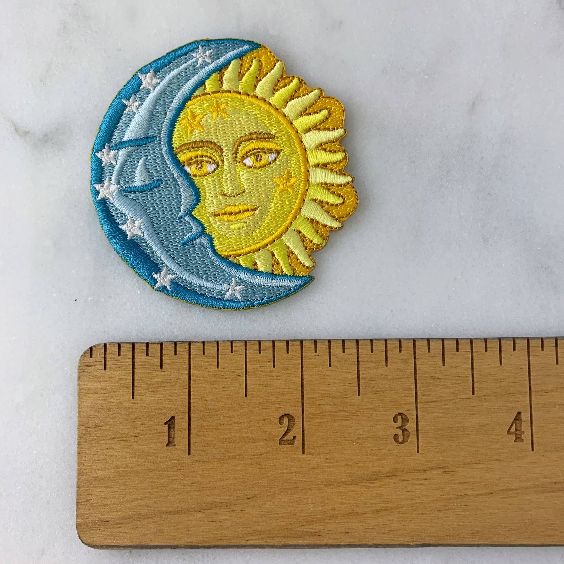 Celestial Sun & Moon patch is beyond dreamy! Intricately embroidered. Wildflower + Co. DIY patches.