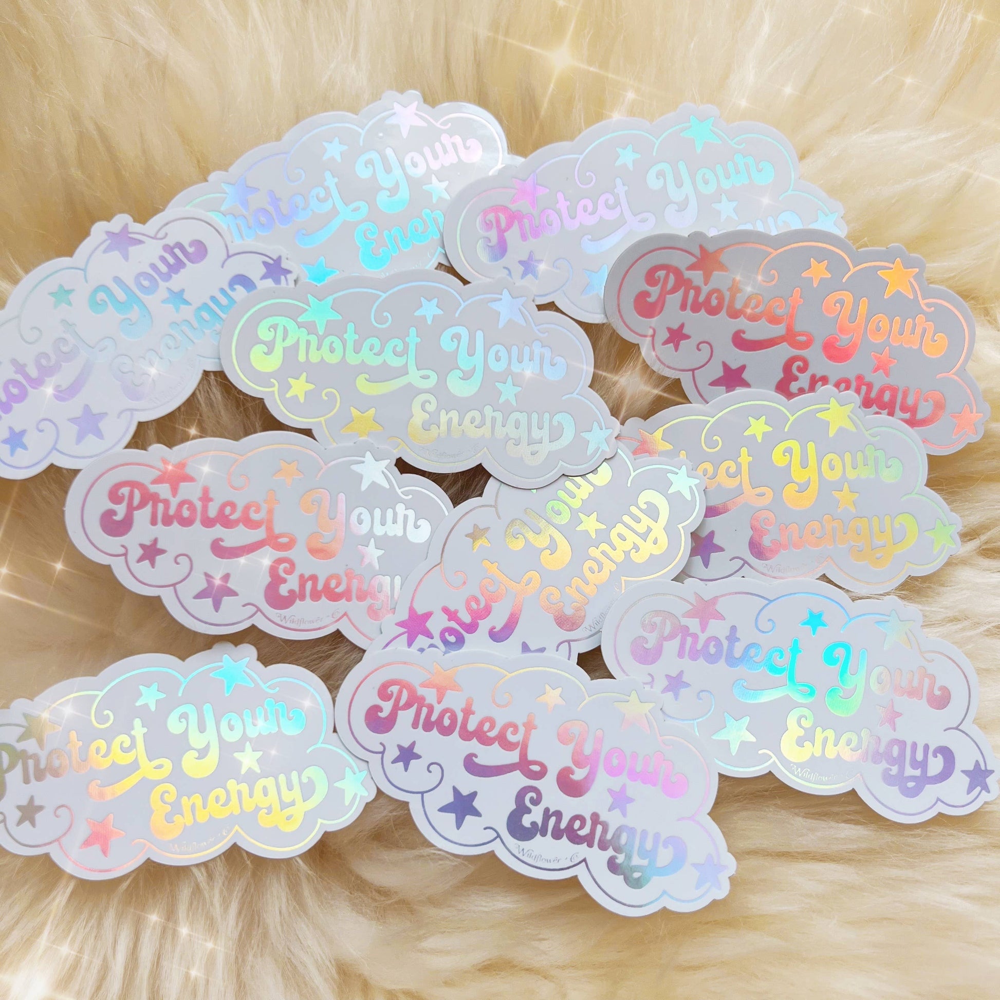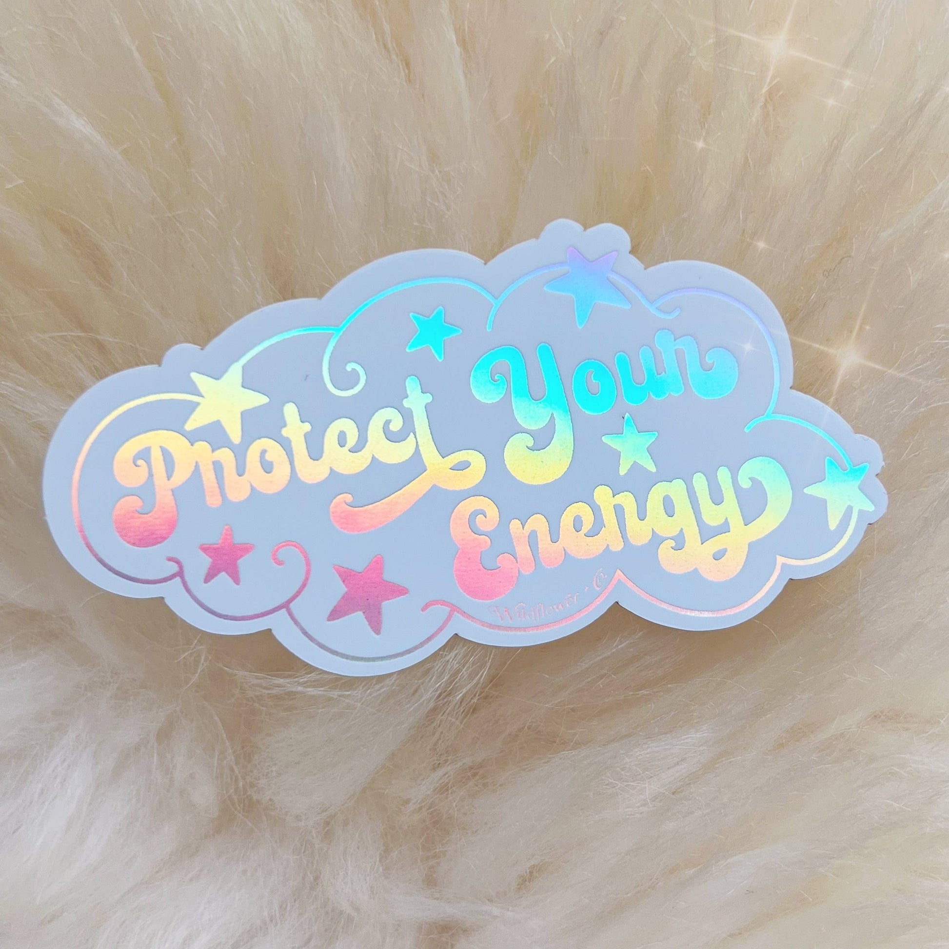 Protect Your Energy Sticker - Fun inspirational sticker to remind you to relax & trust the process! Cute, aesthetic stickers made with holographic vinyl that lends a magical, aura - inspired look!!!